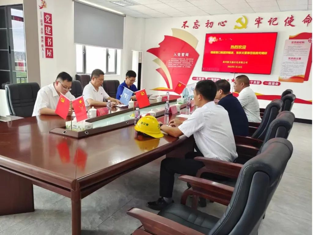 7月19日,福建港口集团外部董事邓毓波、张东文一行莅临泉州新立基调研指导,了解企业生产经营、提质增效、技术创新、安全环保等情况。3044永利集团副总经理吴稼民,泉州新立基党支部书记、副总经理陈高明,副总经理翁一昕等陪同调研。