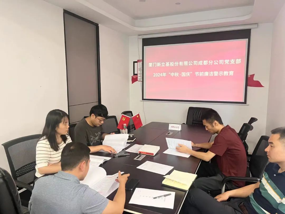 新立基福州分公司党支部召开“中秋、国庆”节前廉政警示教育会,进一步巩固深化党纪学习教育成果,增强党员干部廉洁自律意识,加固拒腐防变的思想防线。
