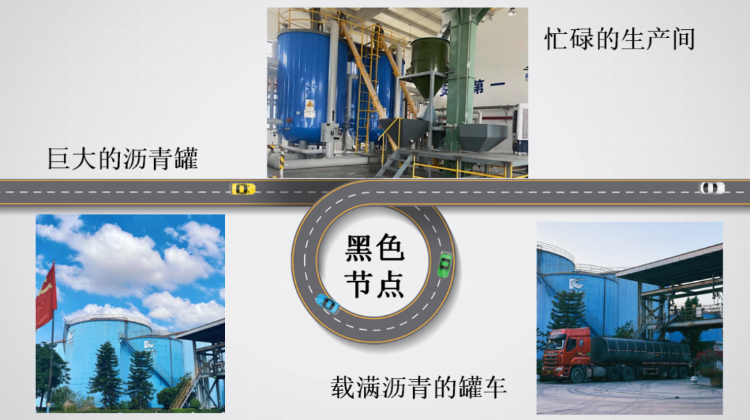 “墨海翻腾千重浪,心潮澎湃思未央”,我开始为这抹黑着迷,主动申请接触它,了解它。我见过它在巨大的沥青罐中凝固的静态,也目睹它在罐车中搅拌的形态,更仔细观察过它在实验室仪器里“跳动”的样子。直到回到原岗位,我都久久不能忘怀。曾经一叠叠急需处理的合同和单据在我的脑海里有了具象的画面,每一个数据都变成了一座座沥青储存罐中的沥青存量,变成了一辆辆被载往客户的罐车和轮船。而我是这之间的重要角色,将信息收集再散发,成为沥青供应链里不可或缺的黑色节点。