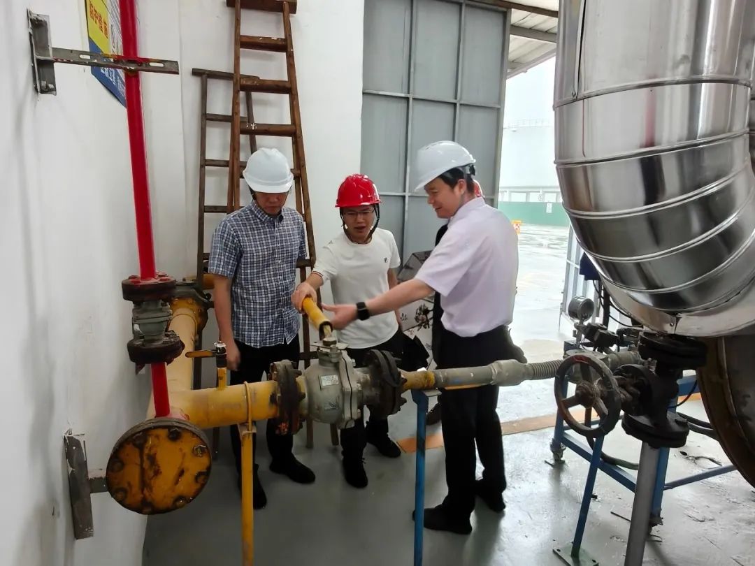 陈育生一行深入库区各重点区域,对沥青储存罐区、装卸作业区、消防设施等进行了细致检查,详细询问了安全管理制度执行情况、应急预案演练及值班安排。检查过程中,陈育生强调,安全是企业发展的生命线,要时刻绷紧安全弦,全面排查隐患,做到“横向到边、纵向到底”,覆盖公司的每一个角落、每一台设备、每一项操作流程。重点检查长期运行的设备,如锅炉、环保设备等,确保设备运行状态良好,设备维护保养记录完整无缺。要提前检查各类应急物资,如灭火器、急救箱、防汛物资等,保证物资齐全、完好有效,关键时刻能够迅速投入使用。确保节日期间生产不停工、安全不松懈。