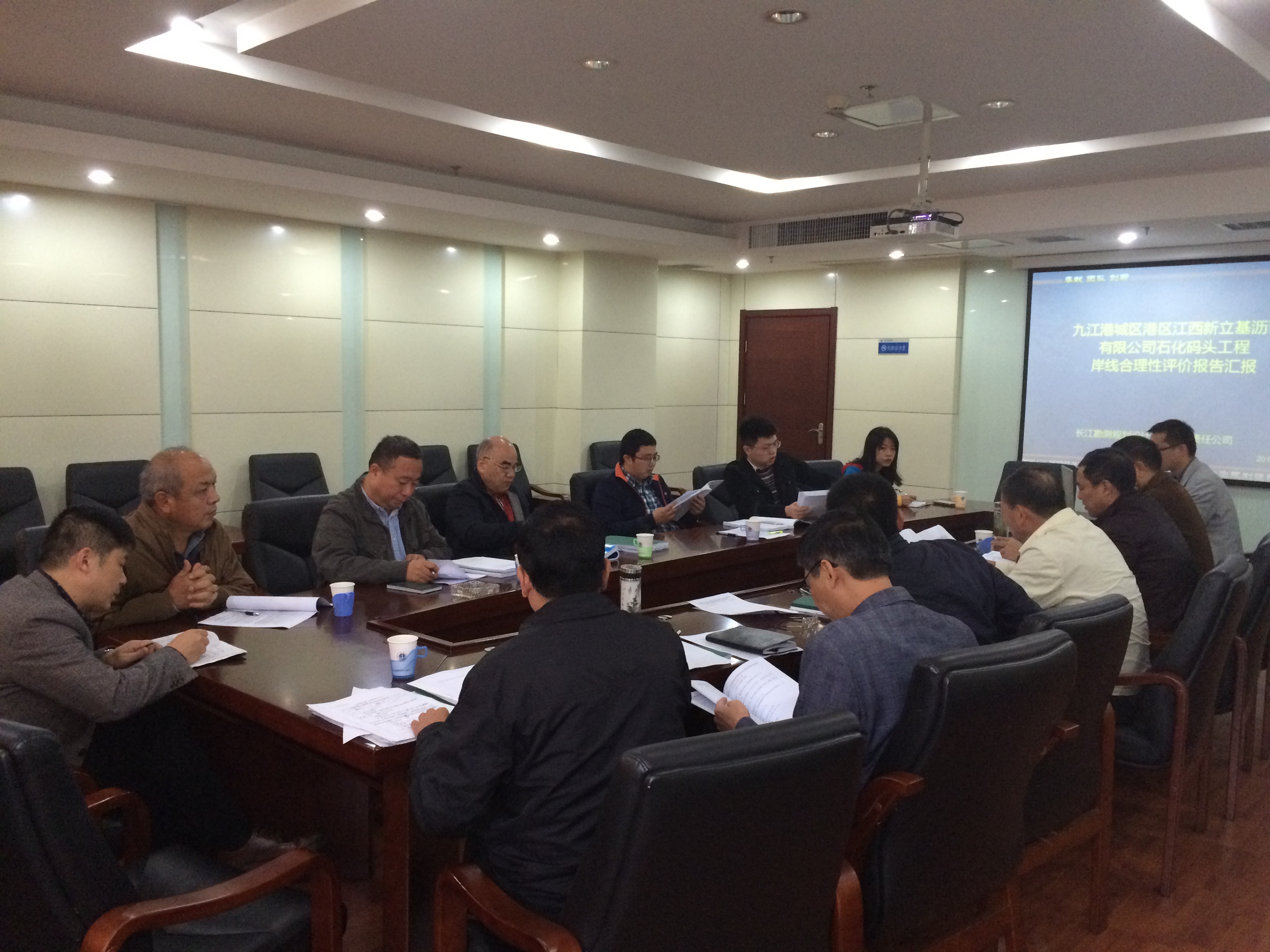 2014年11月18日上午9时,在江西南昌市的省港航管理局会议室召开了“关于江西新立基沥青有限公司安全和理性评审会”。江西省港航管理局杨礼生副局长、省交通厅规划处杨辉副处长、九江市港口局副局长王凌云、丁科长、江西新立基总经理朱保健、专家组成员及设计单位出席本次会议。