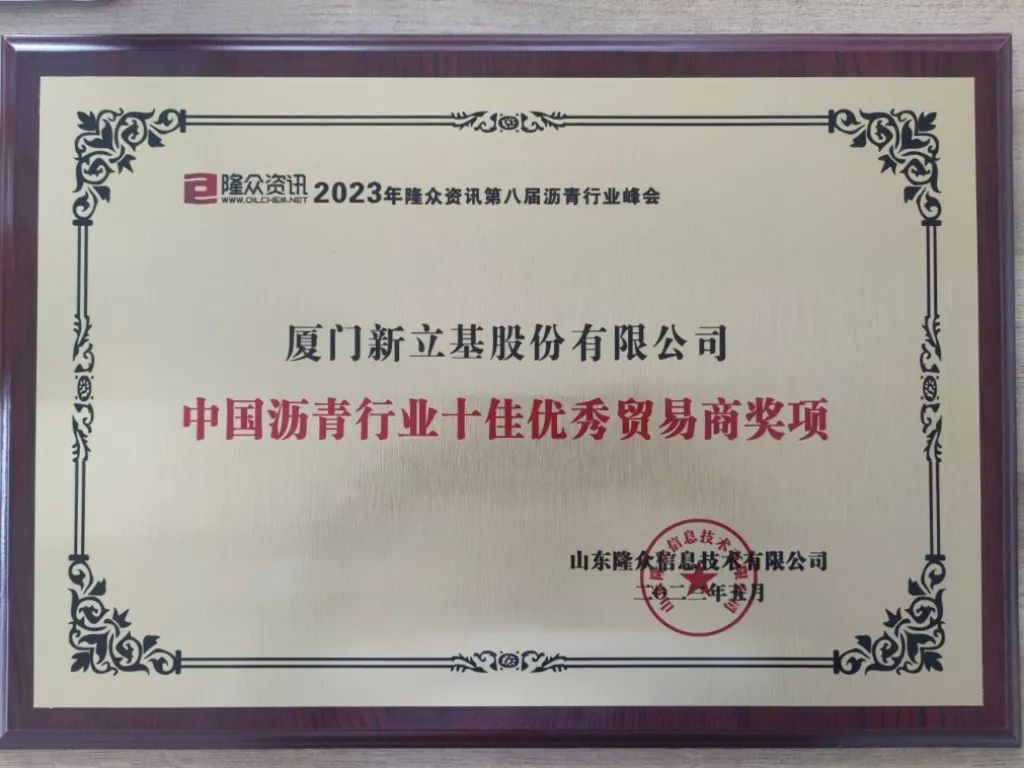 乘风破浪相迎供需新格局,蓄势待发共创未来新发展。此次荣获“年度中国沥青行业十佳优秀贸易商奖项”是国内沥青同行业对3044永利集团的极大认可,3044永利集团将一如既往地把福建港口集团“三争三提”部署要求落到实处,增强企业核心竞争力,不断提高服务意识,扩大新立基品牌影响力,深化与行业内优秀企业的全方位合作,共同探索沥青行业和谐共赢的产业生态圈道路,推动地区建设高质量发展。