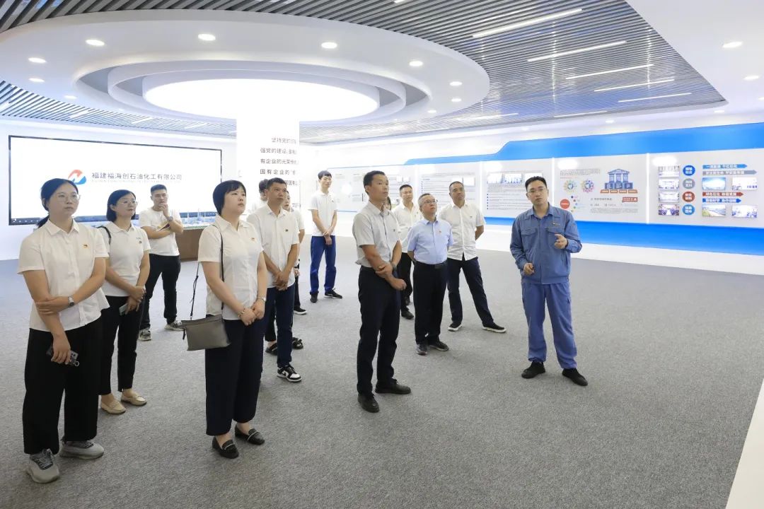 在国有企业爱国主义教育基地——省能源石化集团福海创石化公司文化展厅,党员们在讲解员的详细介绍下,深切感受到在中国共产党的领导下,国有企业跟党创业、向党而兴,孵化培育出一系列国有企业先进精神、先进典型和铸就的大国重器。引导党员干部进一步传承弘扬好伟大建党精神,坚定理想信念,坚守初心使命,努力把学习成果转化为干事创业的实际本领,积极拓展沥青供应链条,增强市场竞争力,确保国有资产保值增值。