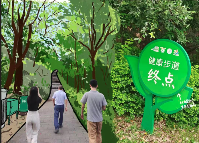 下午下班后,同事带我们前往公园的健康步道散步。